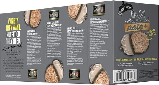 Tiki Cat After Dark Pate+, paquete variado, comida enlatada húmeda para gatos, latas de 2.8 onzas (paquete de 12)