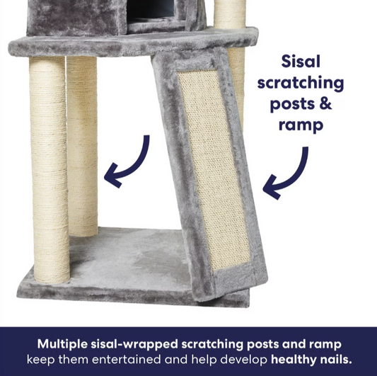 Frisco 52-in Faux Fur Cat Tree & Condo, Gray
