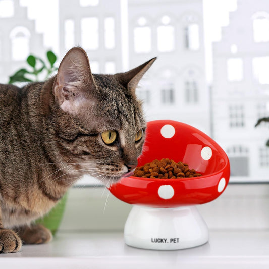 Plato elevado de cerámica para gatos y perros peq diseño hongo