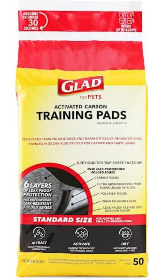 Glad for Pets|Pads de carbón negro para orina de mascotas, desechables, súper absorbentes (23x23 pulgadas, 50 unidades)