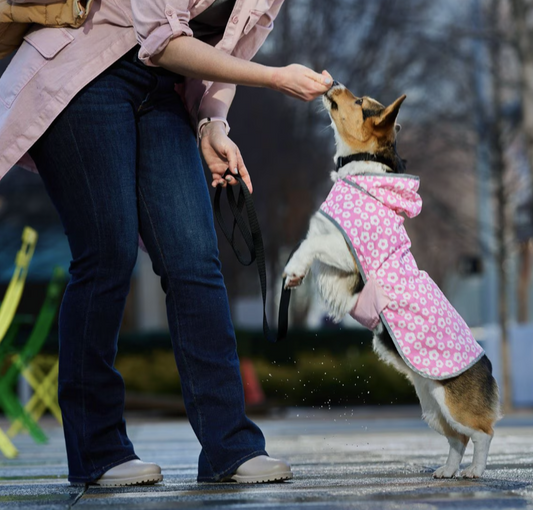 Lightweight Reversible Packable Travel Dog Raincoat, Pink