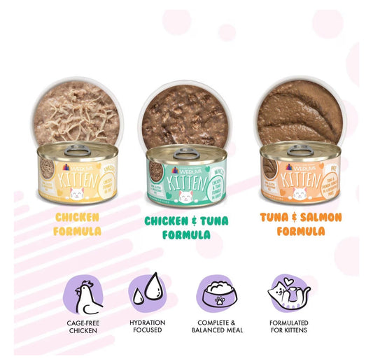 Weruva Kitten Can Jam! Chicken, Tuna & Salmon Flavored Pate 3-oz (paquete de 12 unidades)