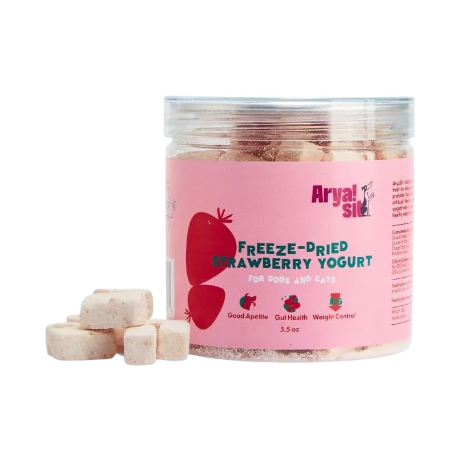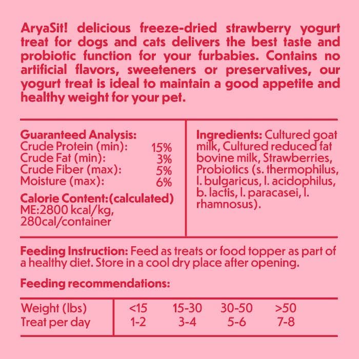 Arya Sit Golosinas para perros liofilizadas de un solo ingrediente (yogur de fresa con leche de cabra)