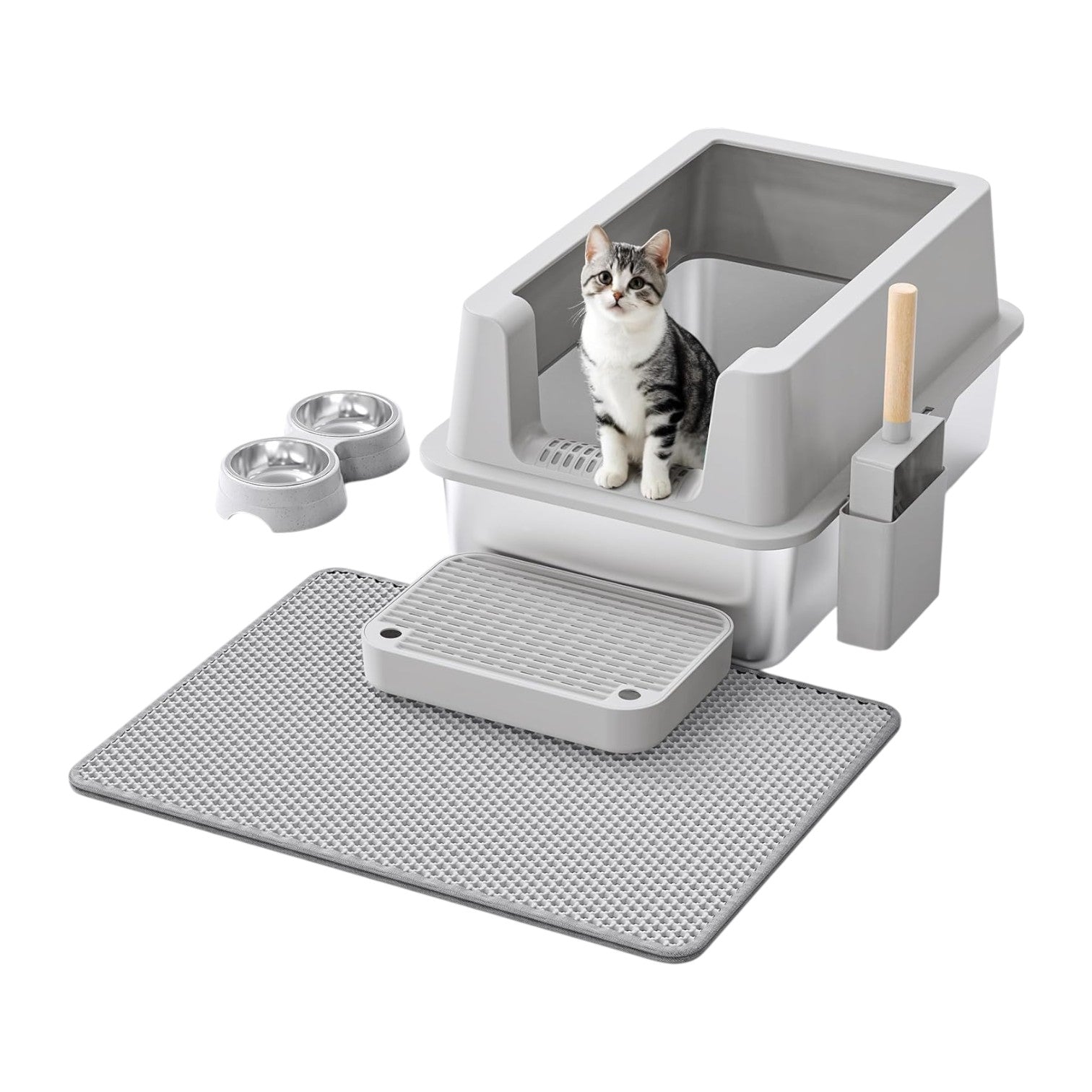 Nuestra caja de arena de 12 pulgadas de alto evita que la orina se filtre por las costuras, mientras que también contiene salpicaduras de arena durante la excavación. Con su diseño de cierre seguro, esta caja de arena de acero inoxidable se mantiene en su lugar incluso durante los momentos más enérgicos de tu gato, ahorrándote un valioso tiempo en la limpieza diaria.