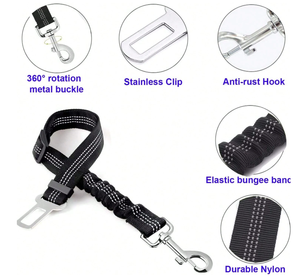 - Este cinturón de seguridad para automóvil para perros no solo se puede enganchar a la barra de cierre de tu vehículo, sino que también se puede fijar a la hebilla del cinturón de seguridad del automóvil, por lo tanto, ya sea que hayas instalado el asiento de seguridad para niños en el automóvil o no, nuestra correa de cinturón de seguridad podría funcionar