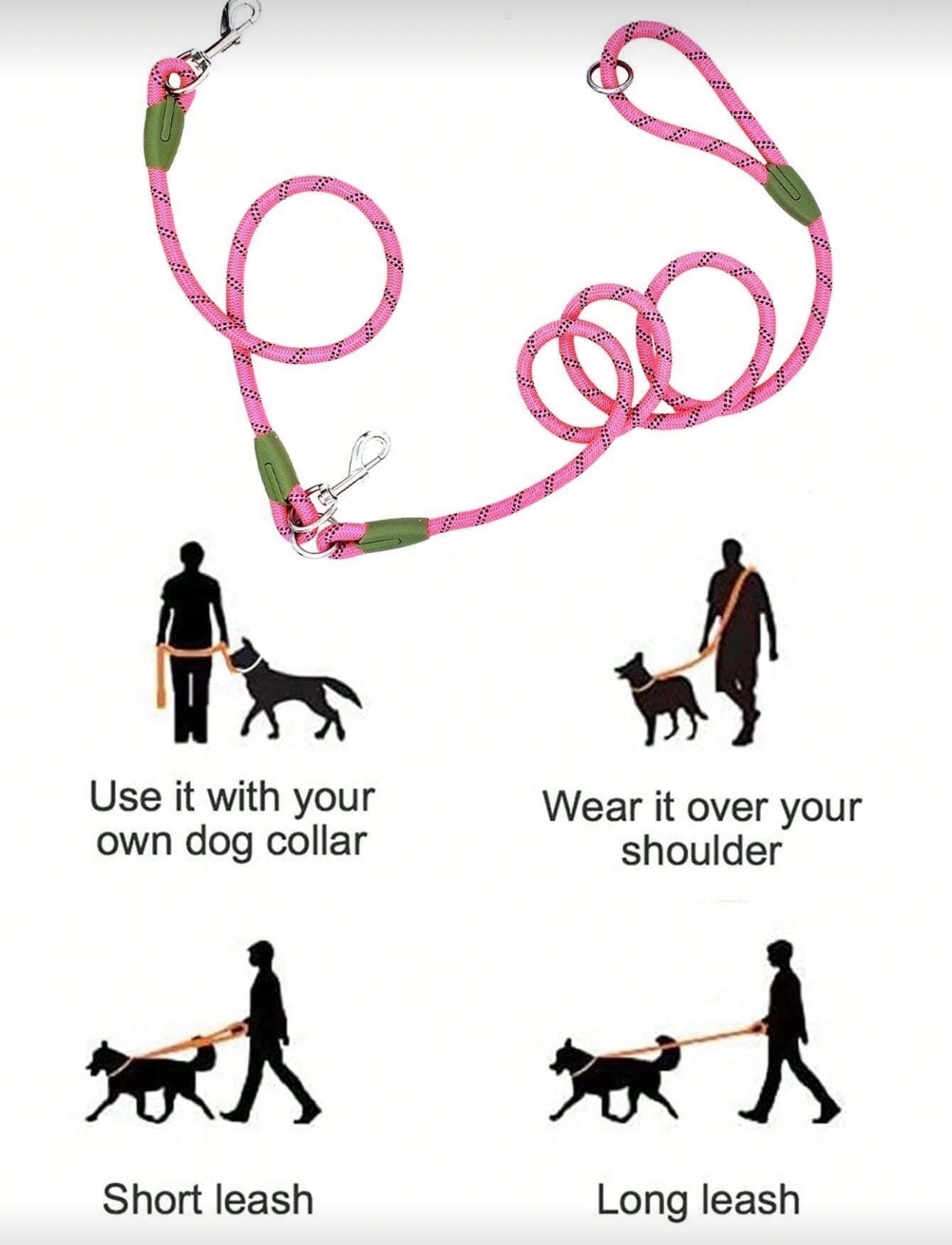 Diseño manos libres: La correa sin manos está diseñada para viajes rápidos y se puede llevar en diagonal sobre un hombro sin necesidad de ajustes, lo que la hace ideal para correr o ir de compras, reduciendo la carga en la muñeca. Material de primera calidad: La correa para perros para correr está hecha de nailon de alta densidad, que soporta una fuerza de tracción extrema, y tiene una superficie muy lisa para evitar lesiones en las manos. Bandas reflectantes: La correa cruzada cuenta con bandas reflectantes para máxima seguridad para ti y tu perro durante la noche o en condiciones de poca visibilidad.