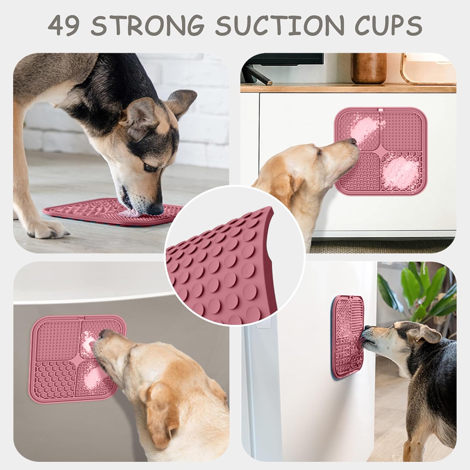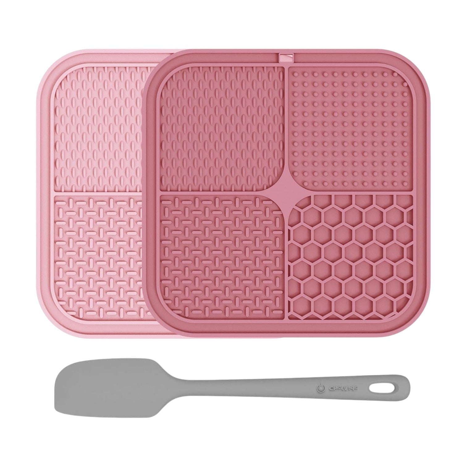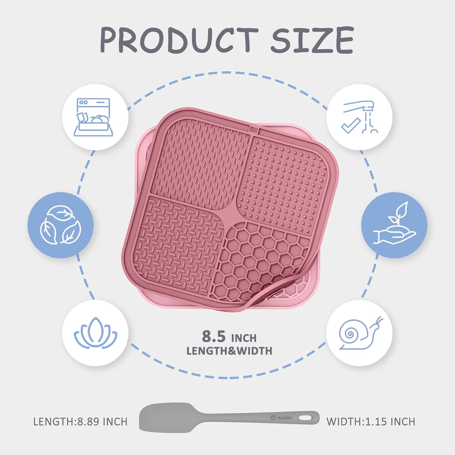 - Silicona de grado alimenticio: nuestra alfombrilla para lamer está hecha de silicona de calidad alimentaria, 100% libre de BPA y no tóxica. 4 diseños de superficie con textura diferentes que son perfectos para yogur, mantequilla de maní y otras golosinas untables