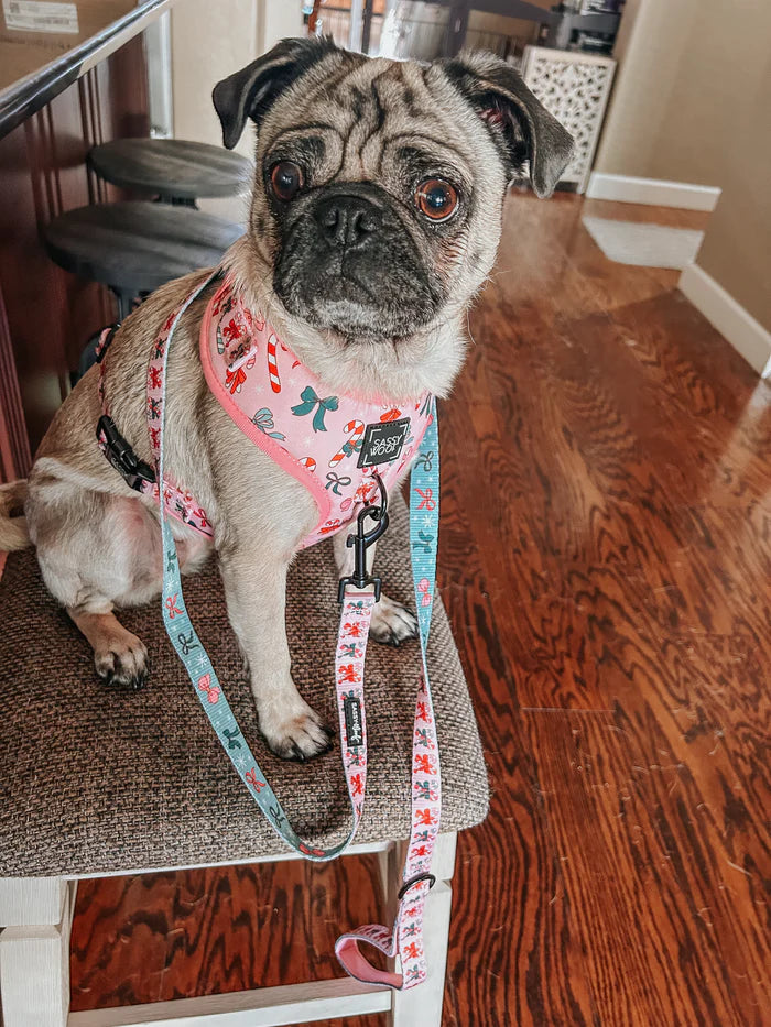 Sassy woof- Holiday collection Pechera y correa a juego candy cane