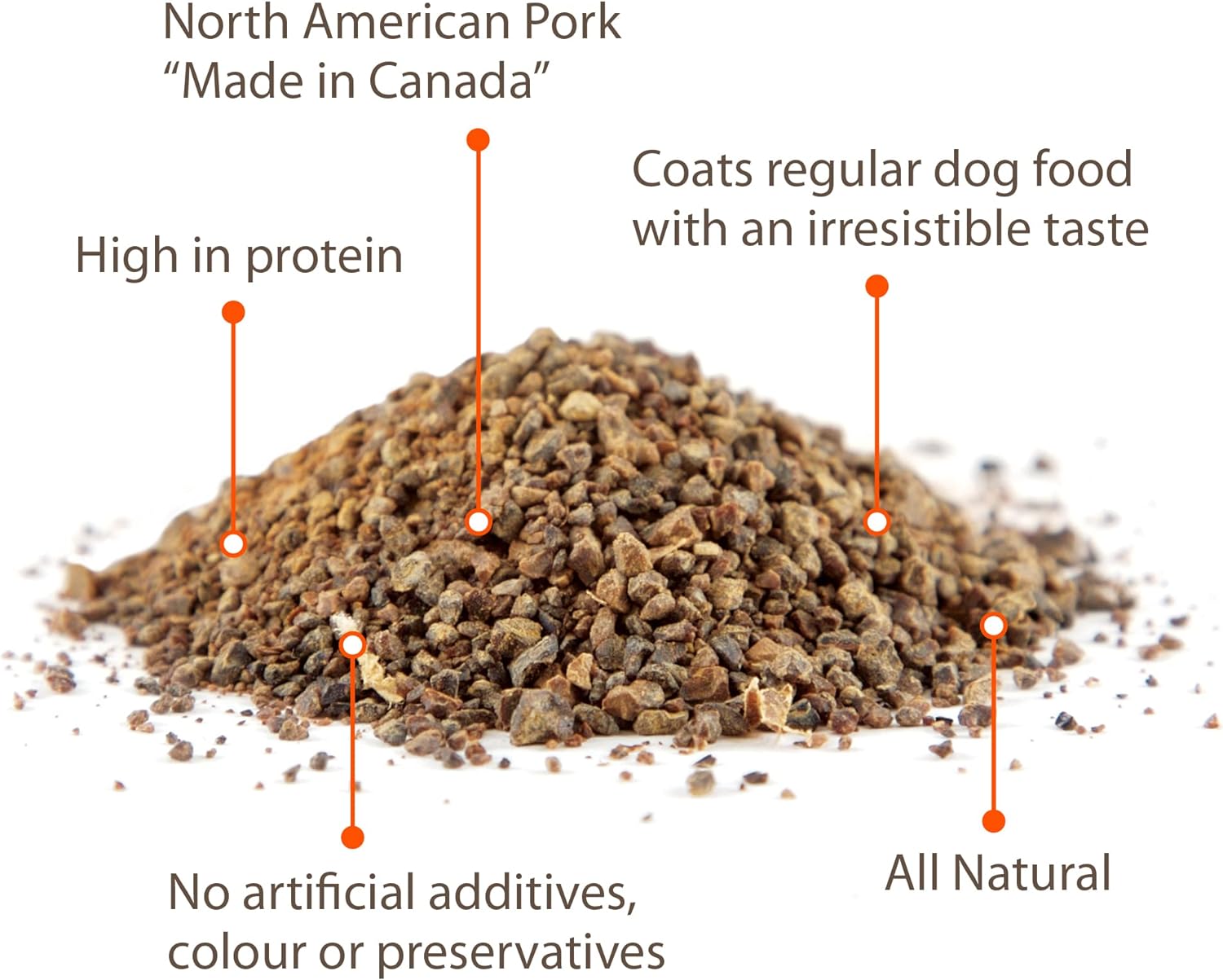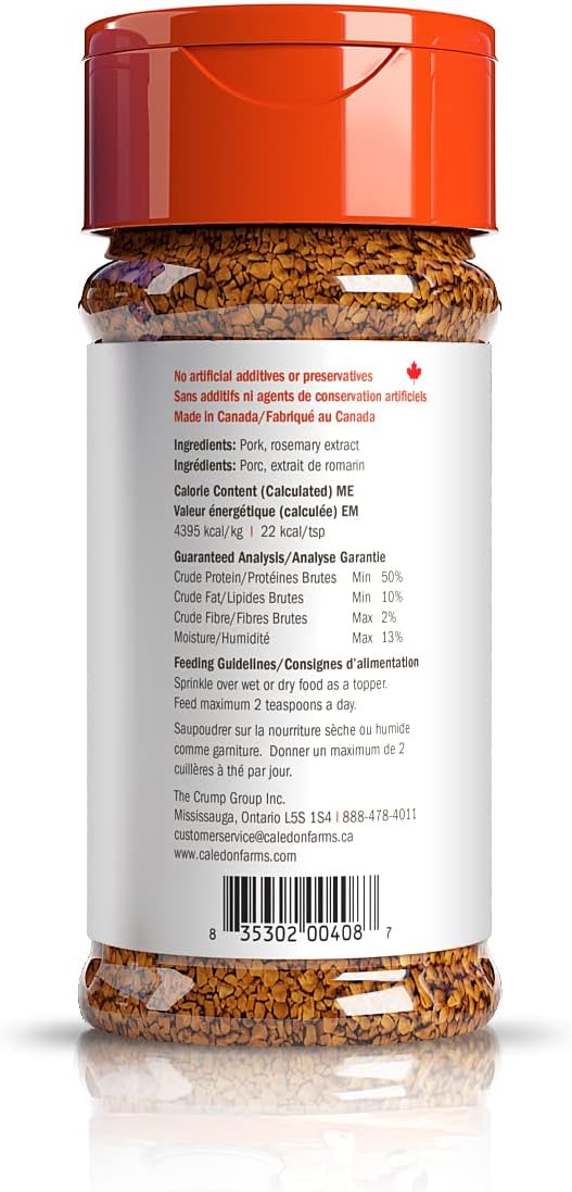 100% cerdo, sprinkles para dar más sabor a la comida de tu mascota. Agrega a sus croquetas diarias y verás como lo motivas a comer más con mucho sabor.