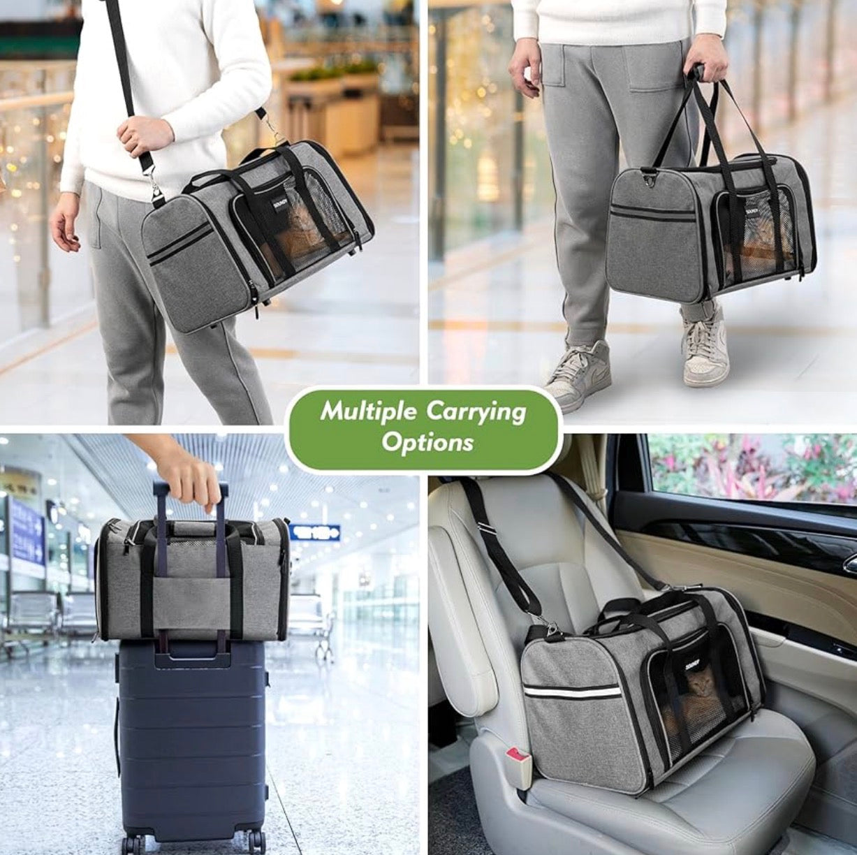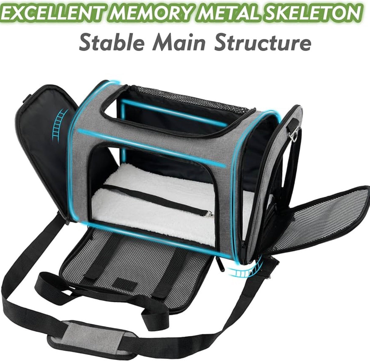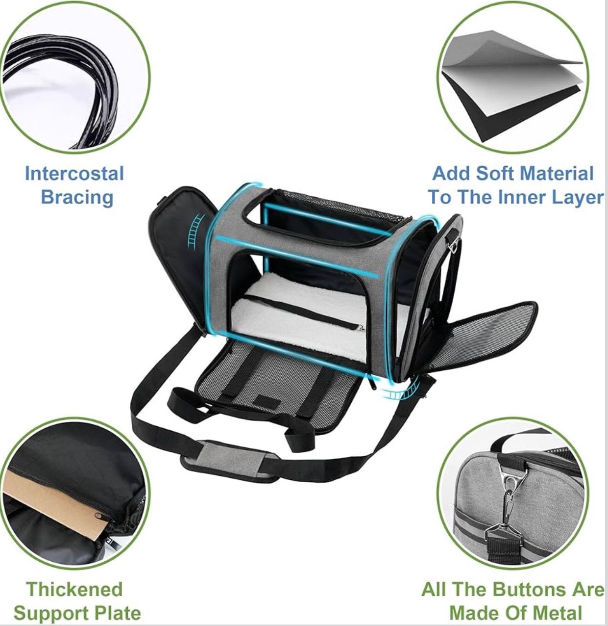 Transportín más resistente: Los alambres metálicos integrados y las varillas de fibra reforzadas garantizan que el transportín no se deforme, ya sea que se lleve en la mano o al hombro. Incluso puede soportar que la mascota se ponga de pie encima. Tela más gruesa: Hemos mejorado el transportín de tela fina y le hemos añadido una capa de material suave para que la textura del transportín sea más suave y le brinde a tu mascota una experiencia de viaje excepcionalmente placentera.